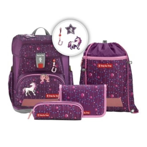 Priestranná aktovka do ktorej sa zmestí všetko potrebné od pera až po športové potreby.5-dielny set obsahuje: aktovku, plný peračník, puzdro na perá, vrecko na úbor alebo prezuvky a vymeniteľné 3D obrázky Magic Mags.